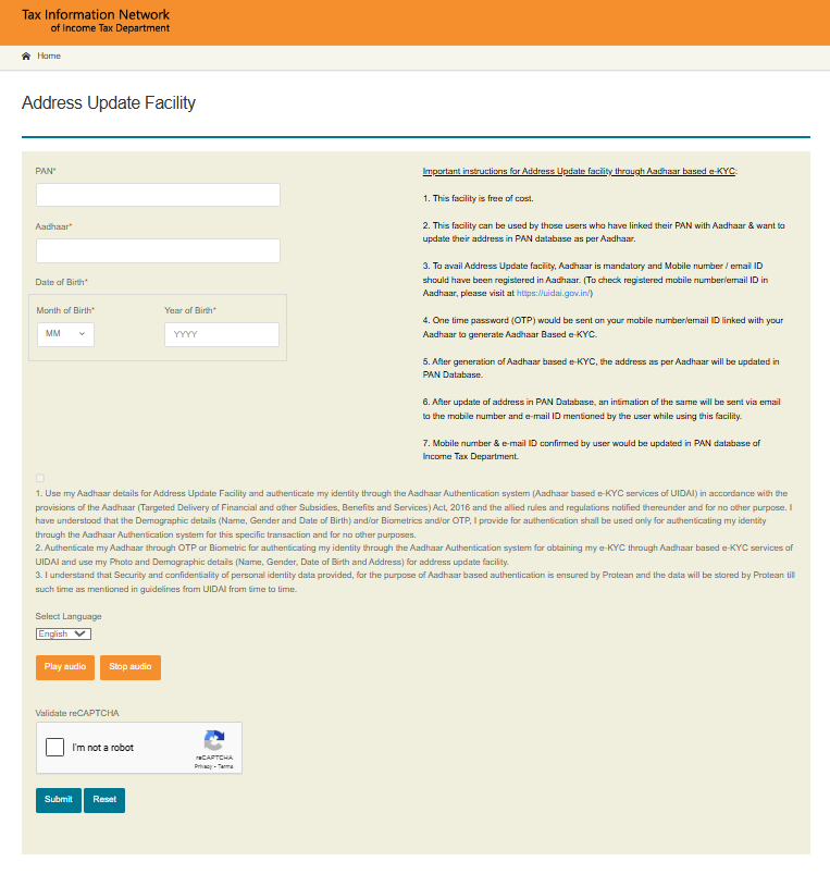 - Open https://onlineservices.proteantech.in/paam/endUserAddressUpdate.html (Protean e-Gov, earlier known as NSDL).